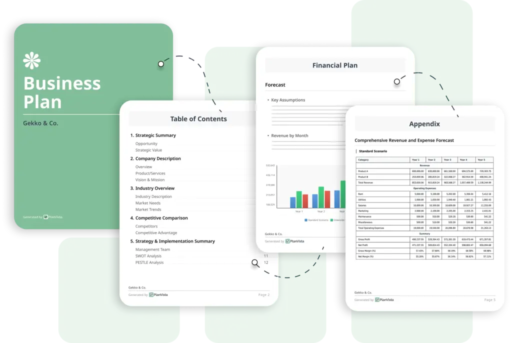 PlanVista delivers a complete business plan with financials, strategy, and insights – all tailored to secure funding and guide growth.