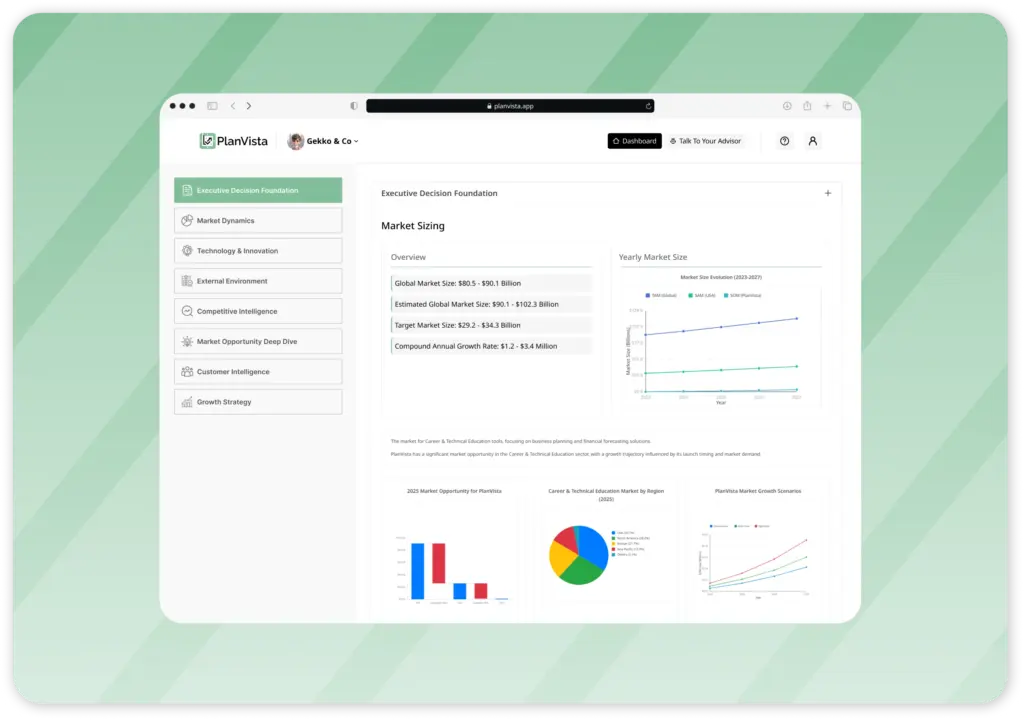 PlanVista delivers comprehensive industry insights and forecasts – built to validate your strategy, impress investors, and guide long-term growth.