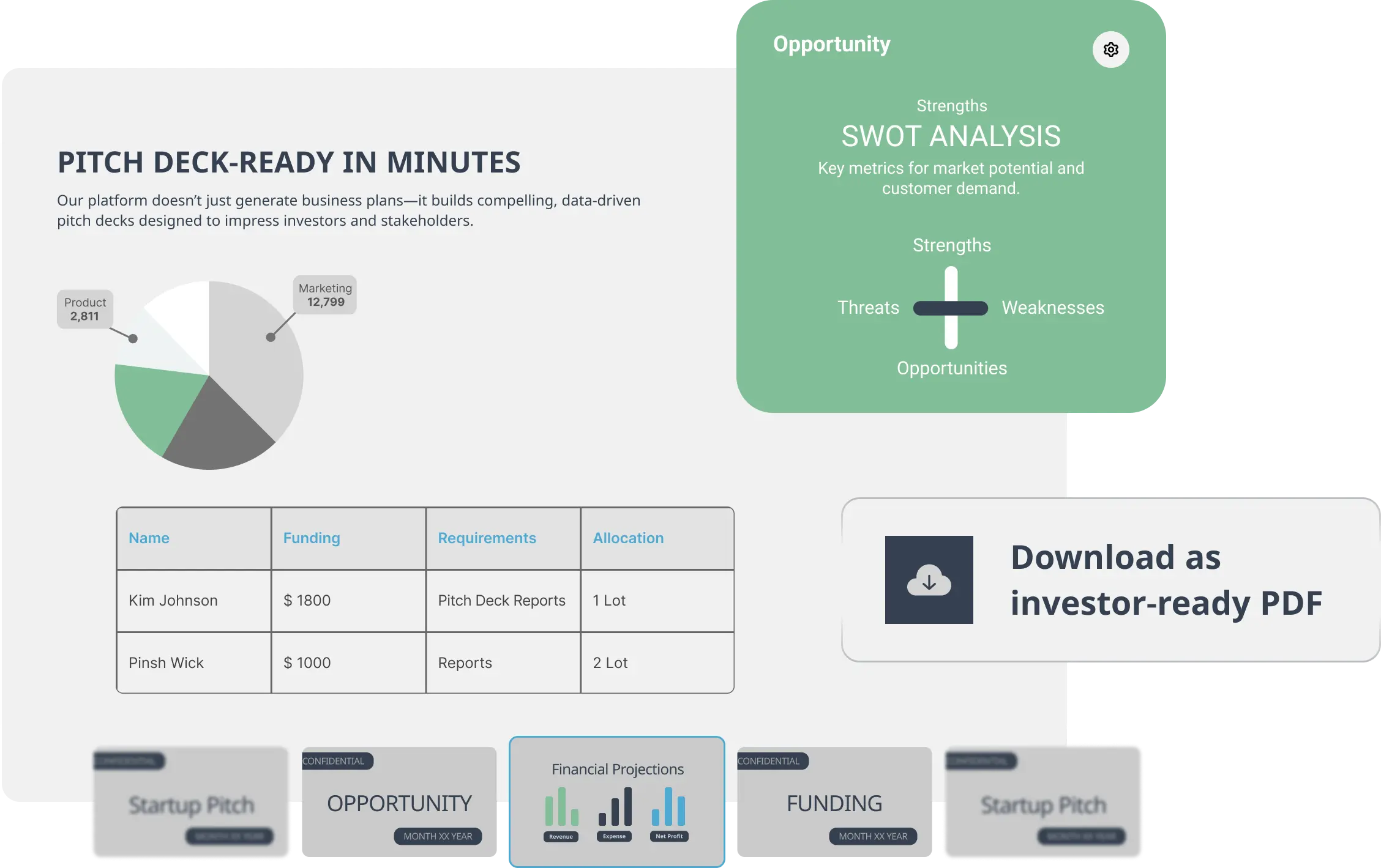 Markets move fast. With PlanVista, you can craft pitch-ready slides that align with investor expectations and highlight your strengths clearly.