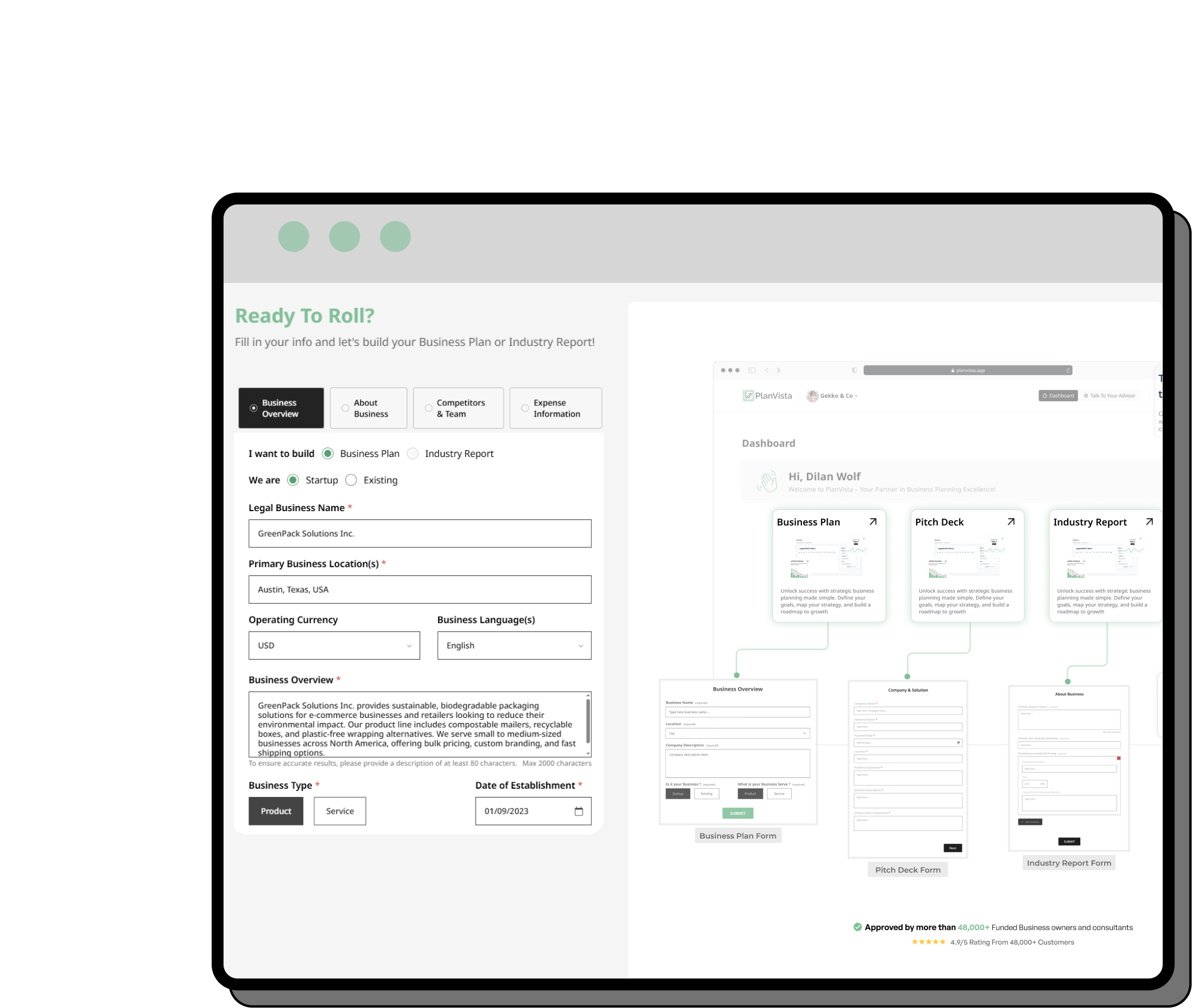 Use PlanVista’s step-by-step planner, market insights, and financial modeling tools to build a complete business plan quickly and confidently.